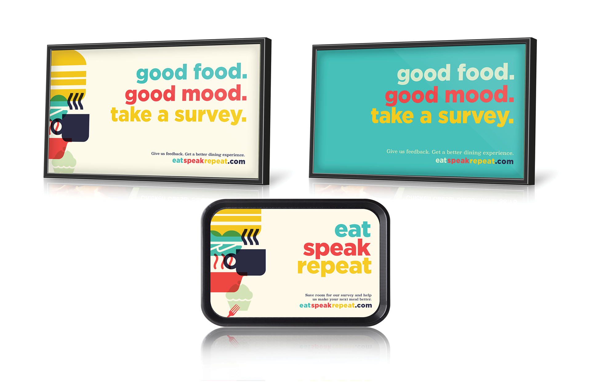 "Voice of the People" is Aramark's survey program that sources feedback from its owned and operated dining locations. I was asked to design a new visual direction for the promotional assets and placements.